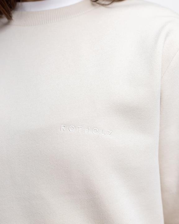 De trui heeft een normale pasvorm met een minimalistisch geborduurd Rotholz logo op de linkerborst. Oversized pasvorm.