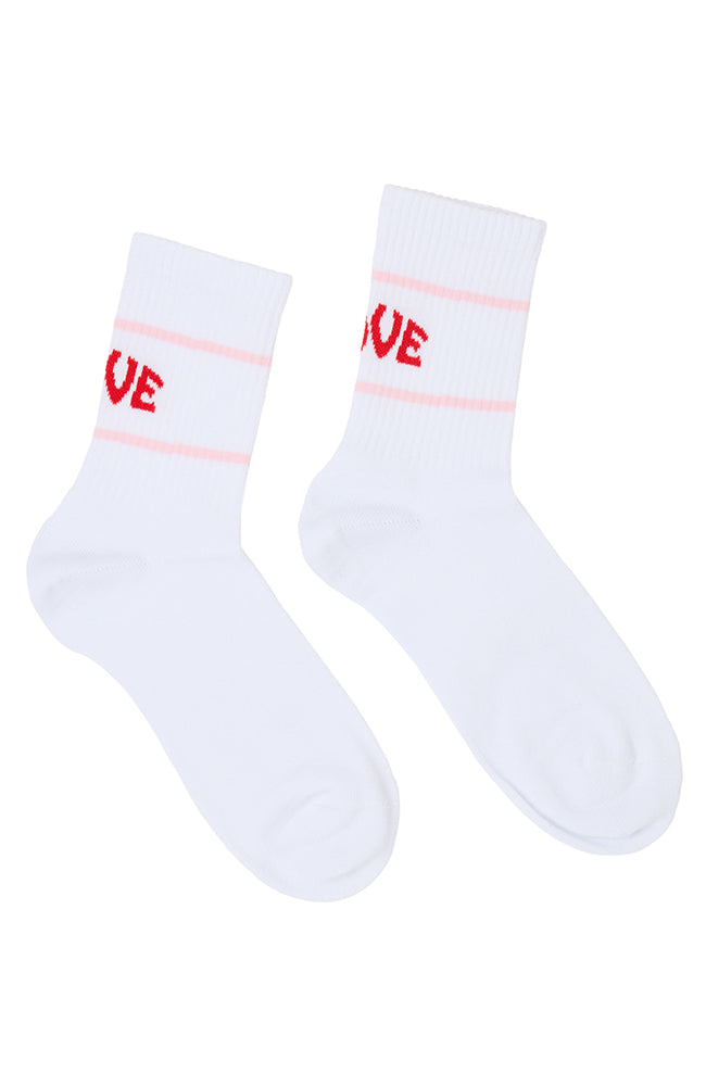 Grappige (sport)sokken van het Duitse merk Lanius gemaakt van GOTS biologisch katoen met een LOVE printje op de achterkant.