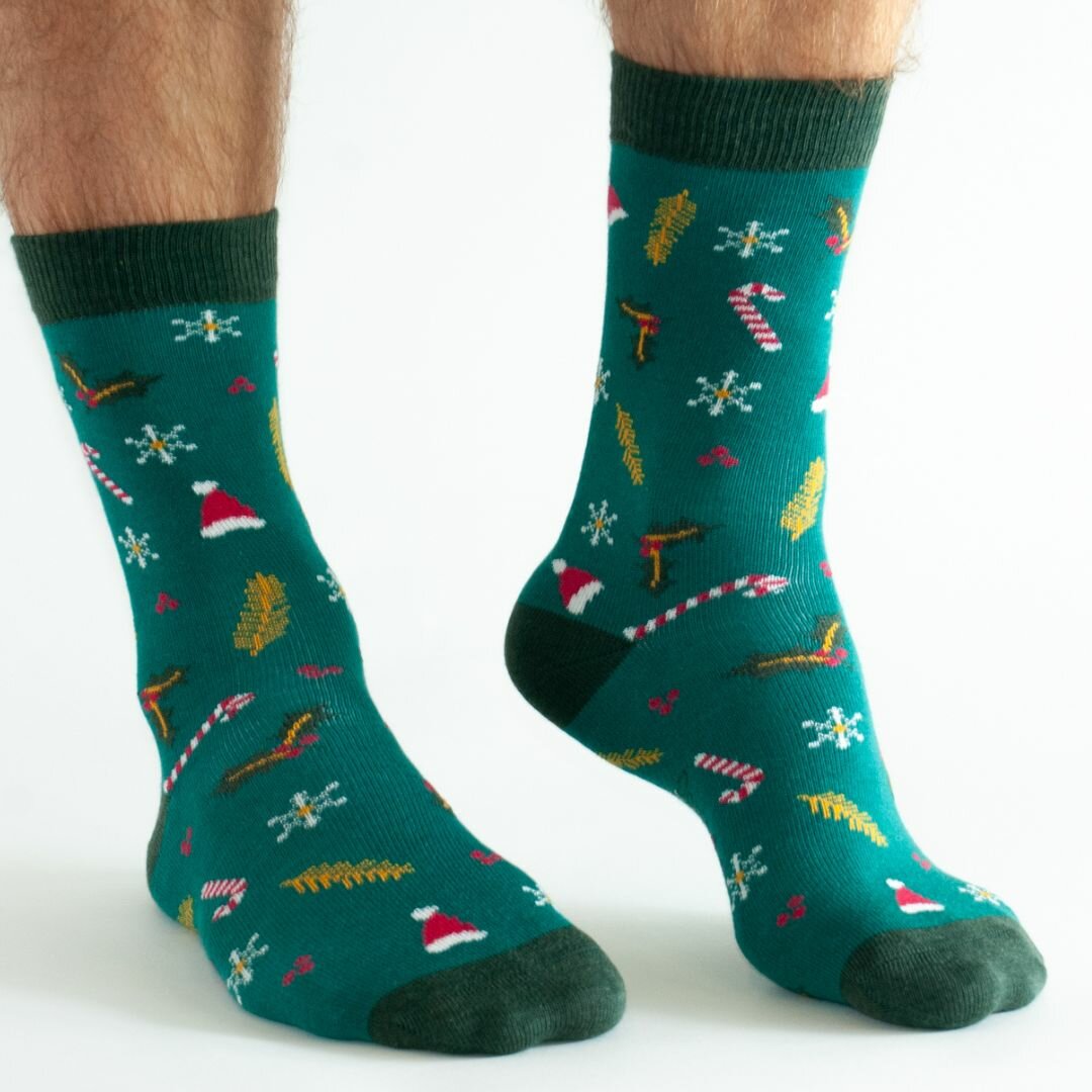 Heren kerstsokken Xmas - groenDeze kerstsokken in de kleur groen zijn van het Engelse merk Doris & Dude. Ze combineren vrolijkheid, comfort en duurzaamheid. Door de leuke print zal je de sokken met plezier dragen. De sokken worden gemaakt van de duurzame materialen bamboe, biologisch katoen en gerecycled polyester. De materialen zorgen voor ademende, zachte en slijtvaste sokken die lang meegaan.