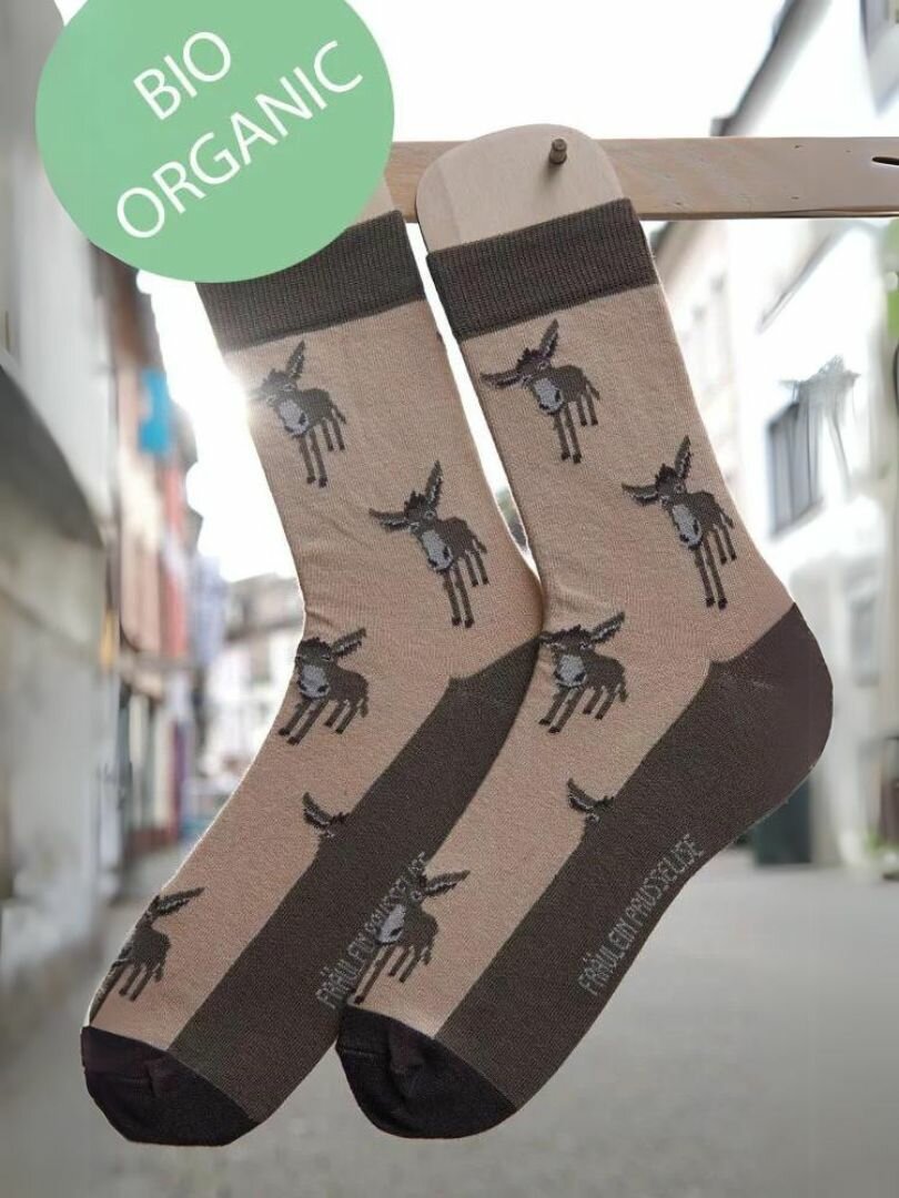 Kies jij ook voor deze prachtige biologische katoenen kindersokken van Fräulein Prusselise? Op de sokken staan schattige ezels. Bij kinderen zijn sokken met dierenprints favoriet.