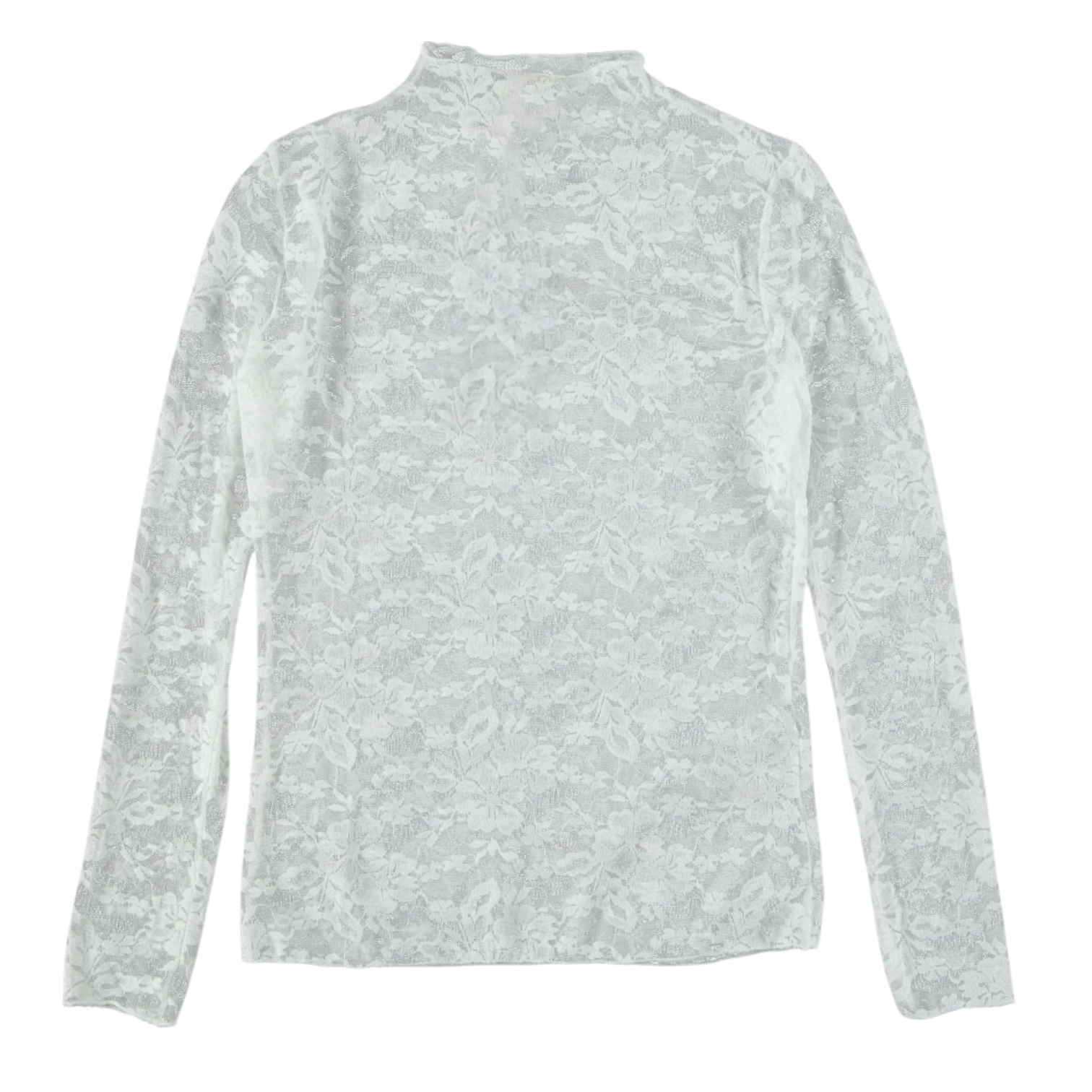 – Vrouwelijke aangesloten top van kant met lange mouwen en lage col