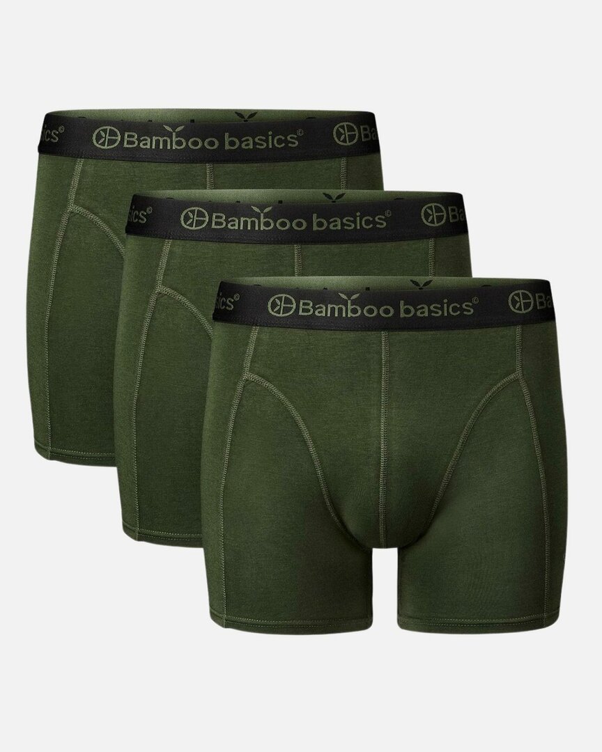 Deze Bamboe boxershorts van Bamboo Basics zitten in een voordelige 3 pack. De bamboe boxers in de kleur army green zijn een echte aanrader. Deze nauwsluitende bamboe boxershorts hebben een brede elastische waistband en een normale pasvorm. Bamboe geeft het ultieme draagcomfort. Probeer het nu zelf!