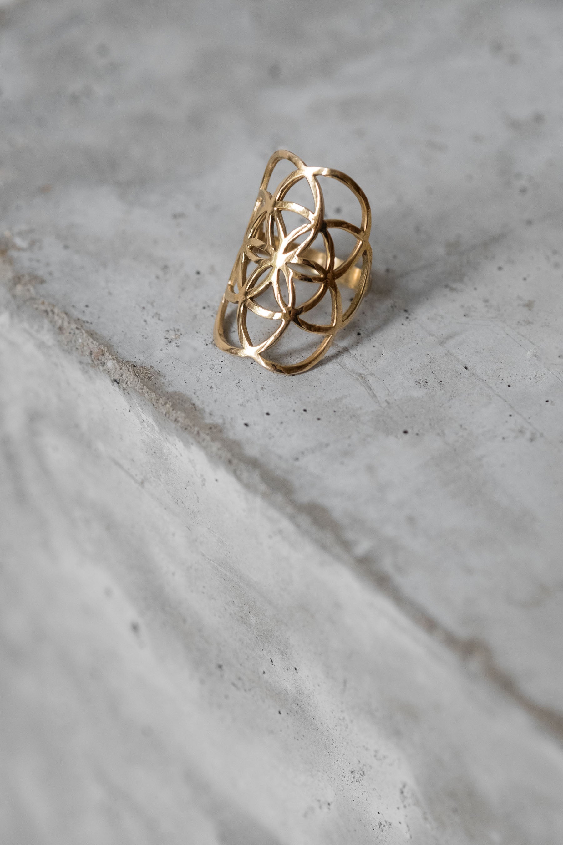 Shiny ring in the shape of the "seed of life". This is an ancient symbol that still appears in many cultures today.